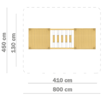APE - 08 Ürün Özellikleri Boyutlar Ürün Özellikleri • 1. SINIF SARIÇAM• VAKUMLU BASINÇLI EMPRENYE KORUMALI• SUBAZLI AHŞAP BOYASI• POLİETİLEN PLASTİK EKİPMANLAR• SICAK DALDIRMA GALVANİZ ZİNCİR Boyutlar